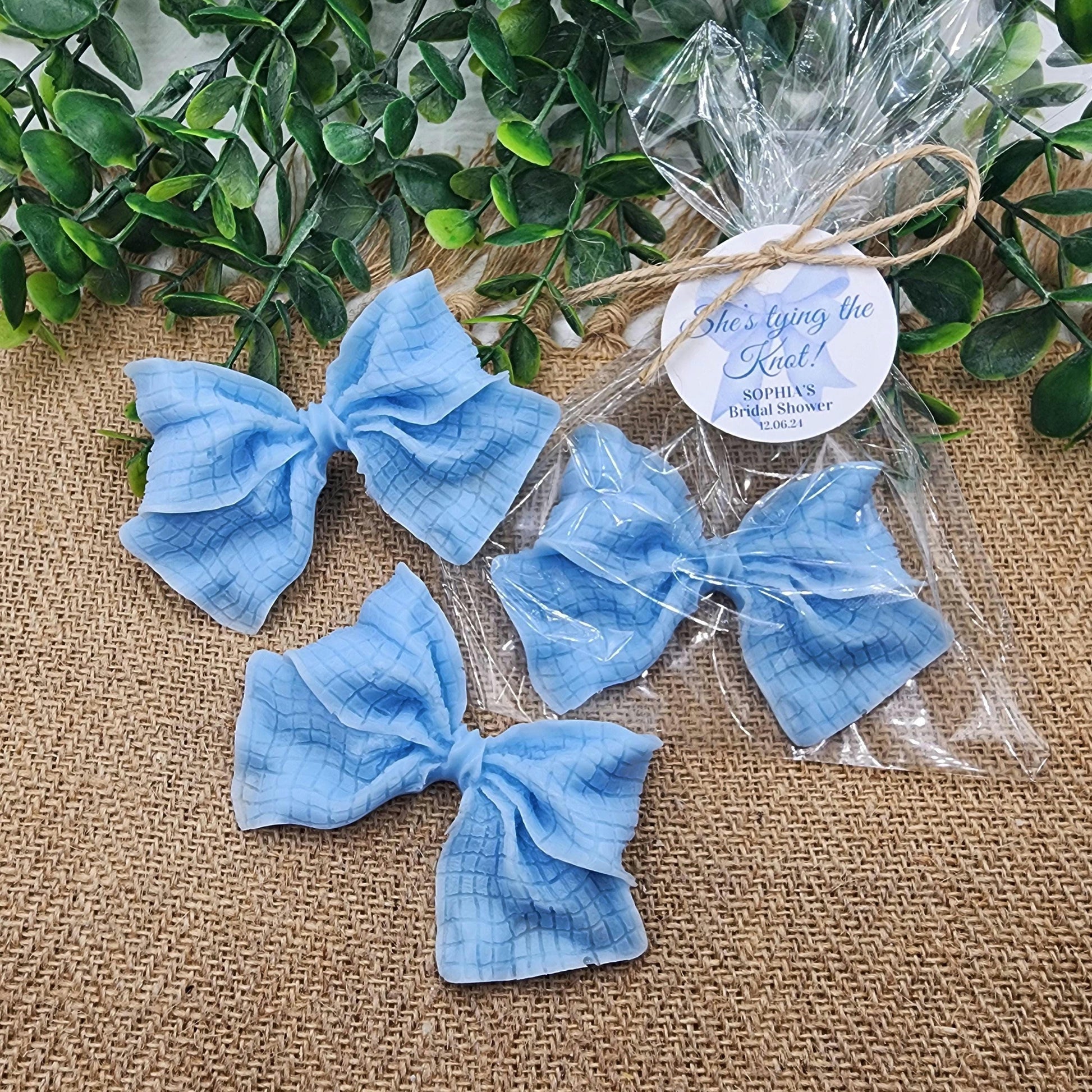 Shaped like delicate bows, each soap is beautifully crafted, individually wrapped, and paired with a personalized tag.