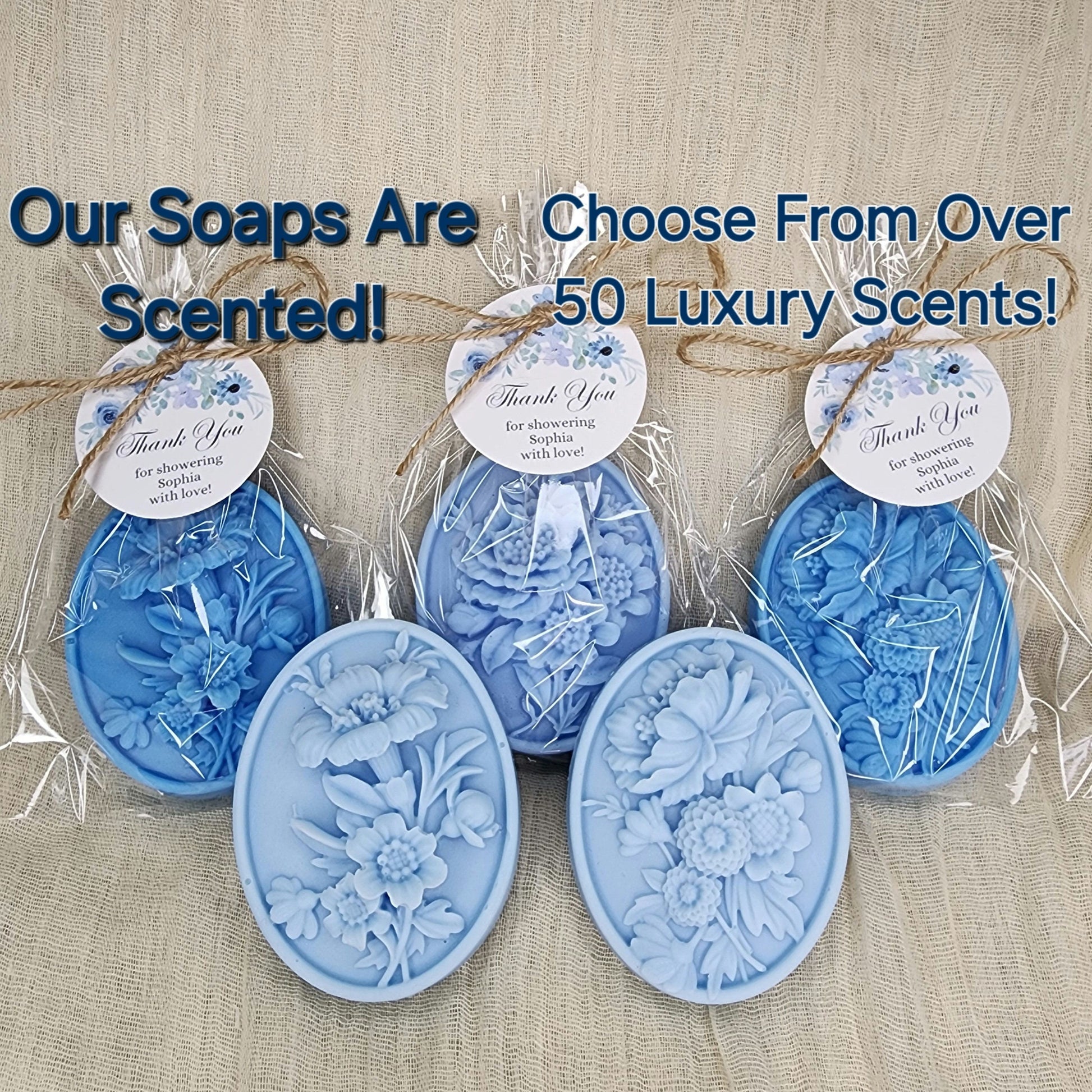 Dusty Blue Flower Soap Favors Baby Shower Something Blue Floral Bridal Shower Decor Baby In Bloom Theme Elegant Floral Lace Decorations