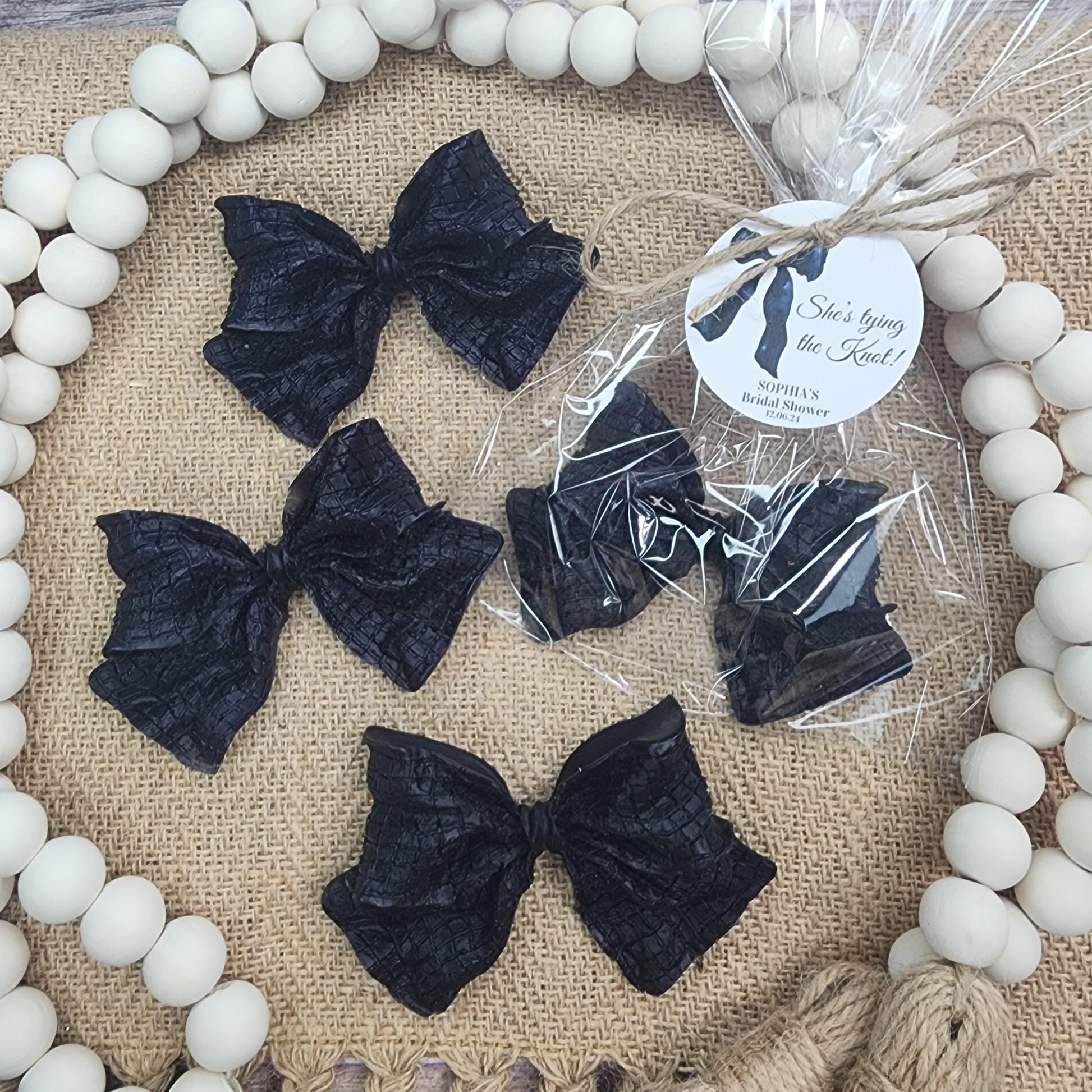 Shaped like delicate bows, each soap is beautifully crafted, individually wrapped, and paired with a personalized tag.