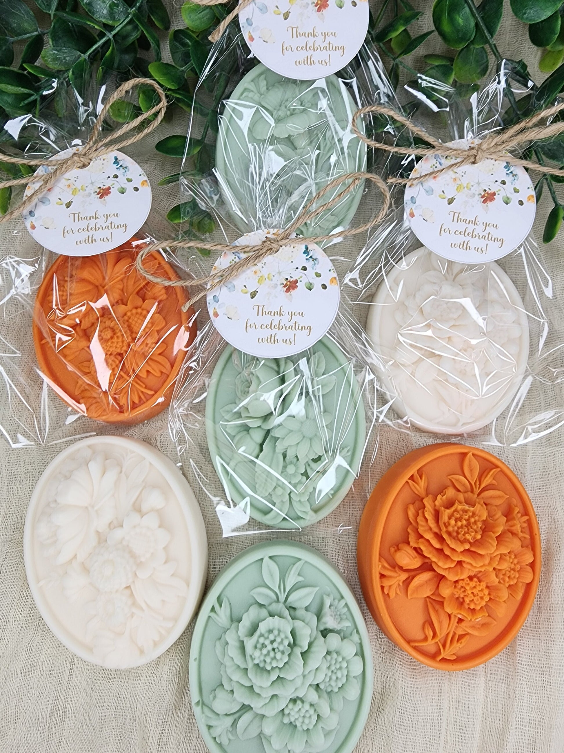 Each soap is delicately crafted to resemble a bunch of flowers, individually wrapped and complete with a personalized tag, making them a charming addition to any event.