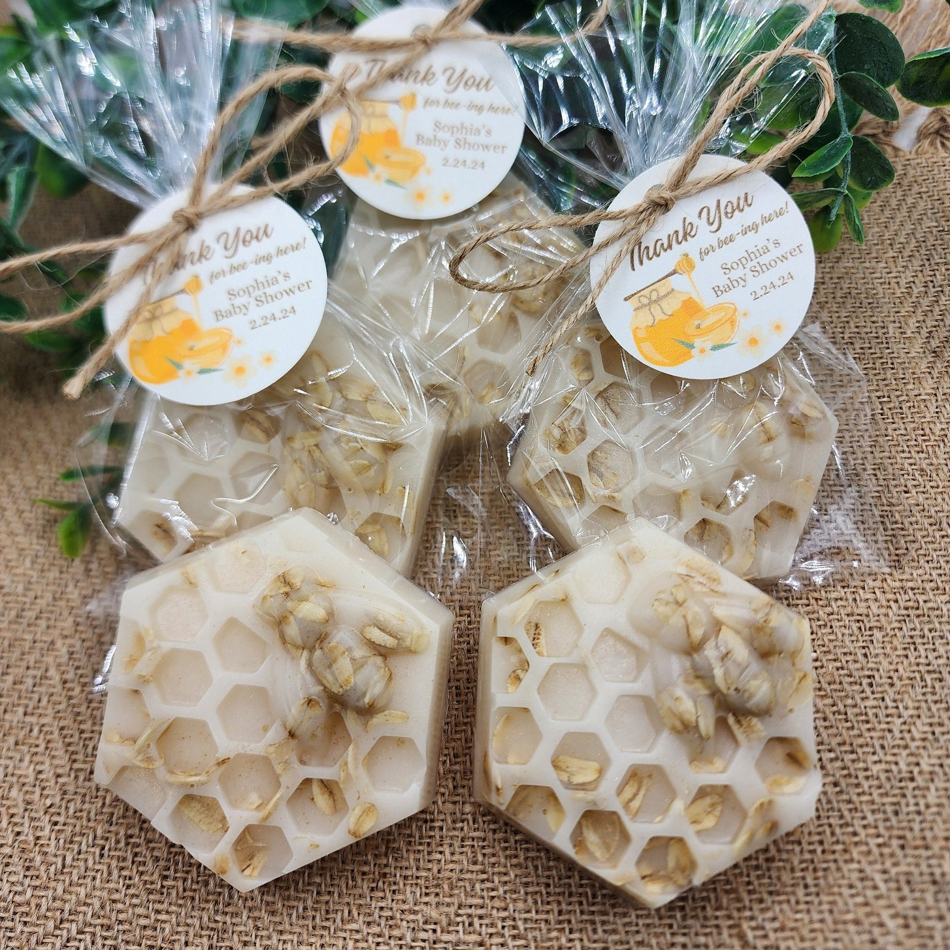 Indulge in the sweetness of our honeycomb soap favors with a touch of oatmeal, perfect for celebrating baby showers, bridal showers, and wedding showers.