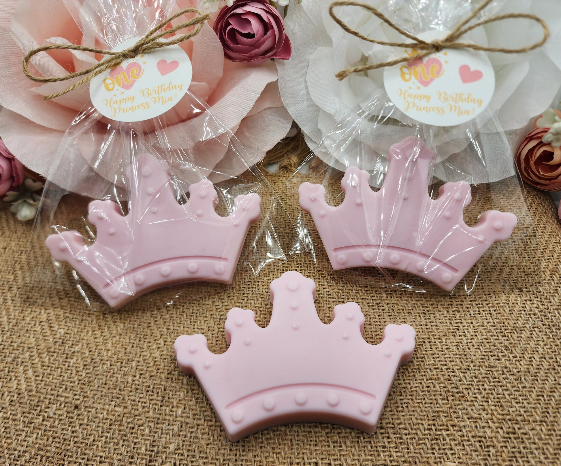 Each tiara,crown soap is crafted with regal precision, individually wrapped, and adorned with a personalized tag in the color of your choosing.