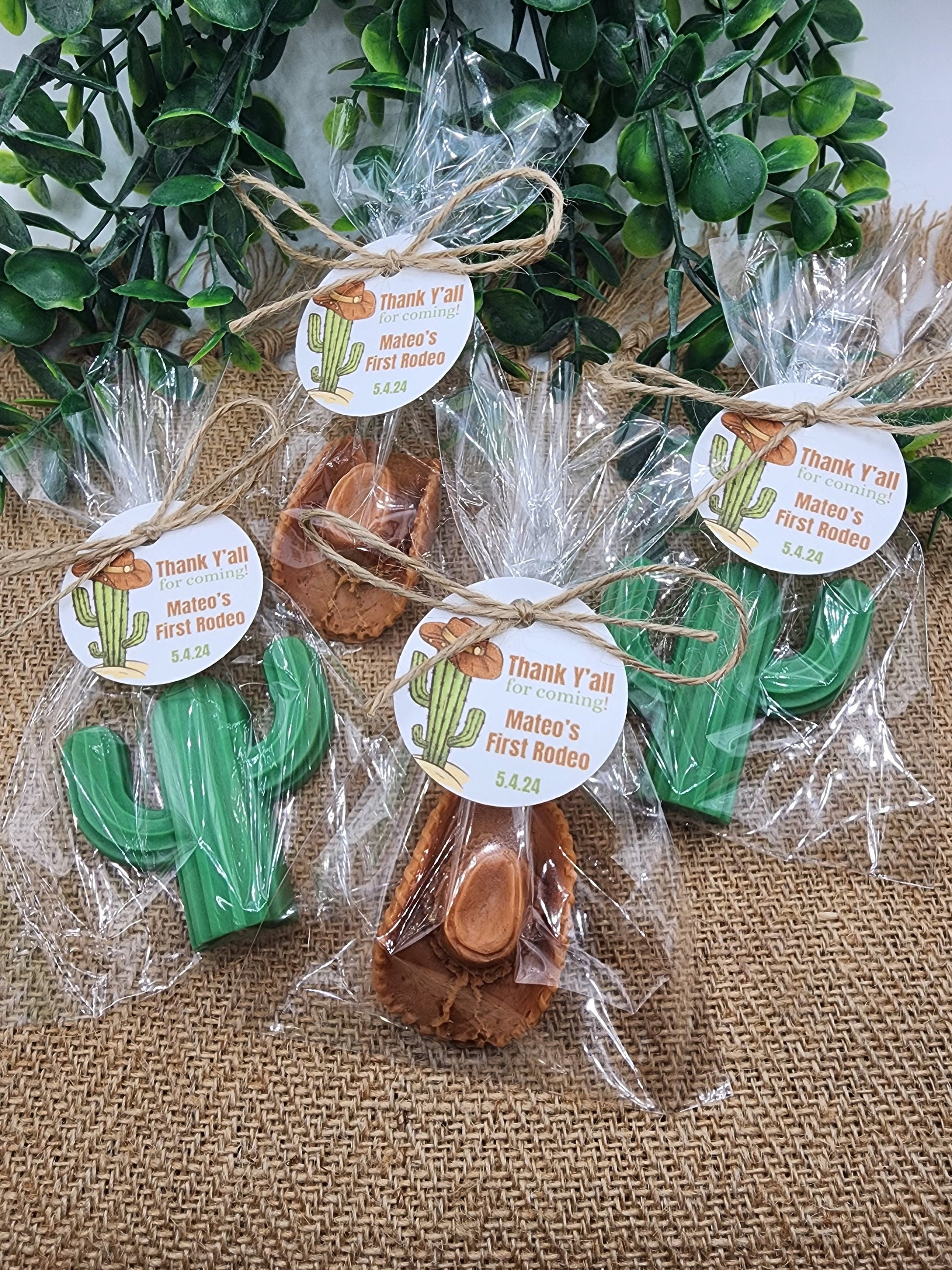 Each soap is individually wrapped and comes with a personalized tag, making them a unique and thoughtful gift for your guests. Whether you're celebrating the arrival of a little cowpoke or tying the knot with a Western flair, these favors add a rustic yet elegant touch to any event.
