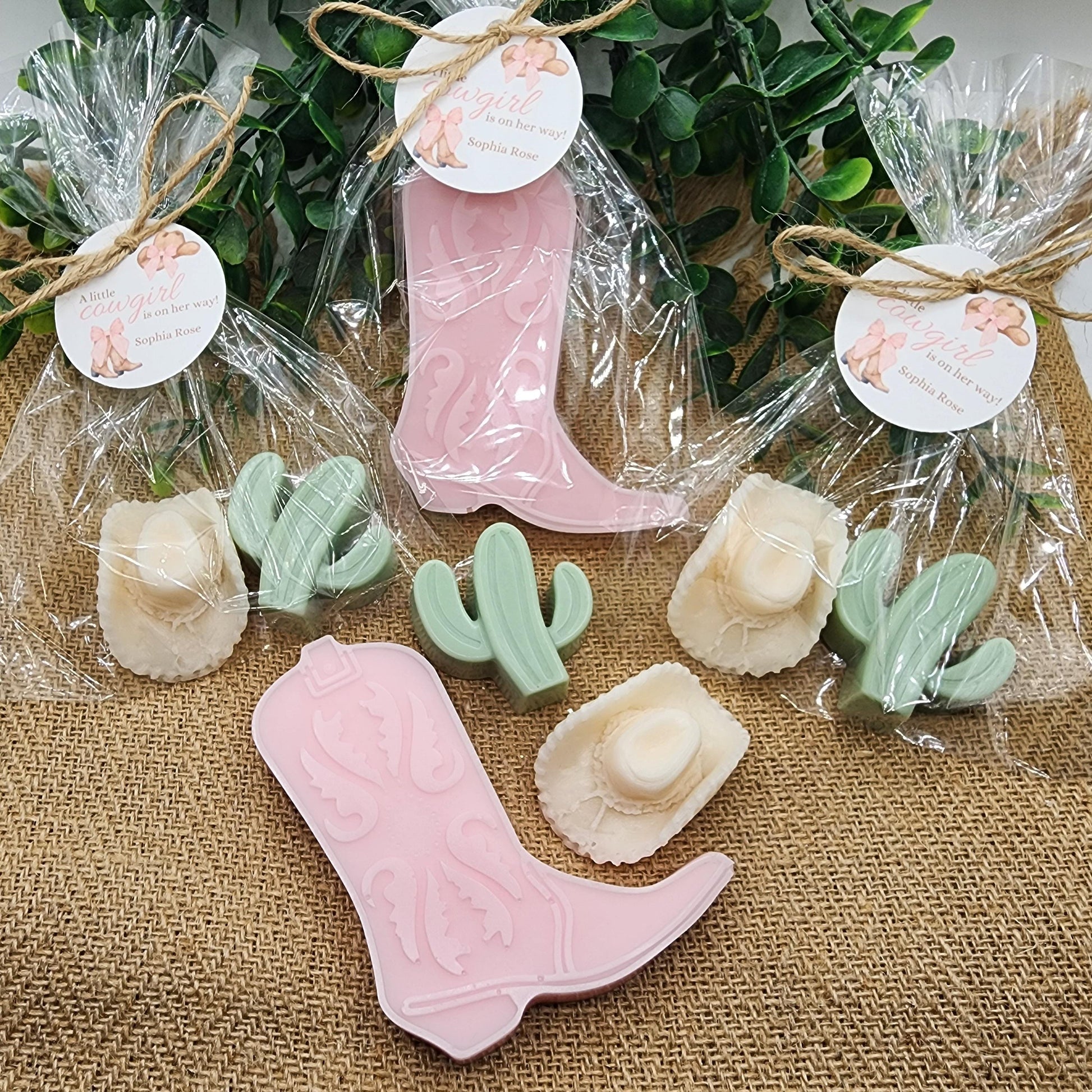 Saddle up for a touch of Western charm with our Western soap favors, perfect for baby showers and bridal showers. Each soap is individually wrapped and comes with a personalized tag, making them a unique and thoughtful gift for your guests. Whether you're celebrating the arrival of a little cowpoke or tying the knot with a Western flair, these favors add a rustic yet elegant touch to any event. Choose from a variety of scents and colors to suit your theme and treat your guests to a little piece of the Wild West they'll love. Thank you so much for supporting my small business and please don't hesitate to message me if you have any questions ❤️